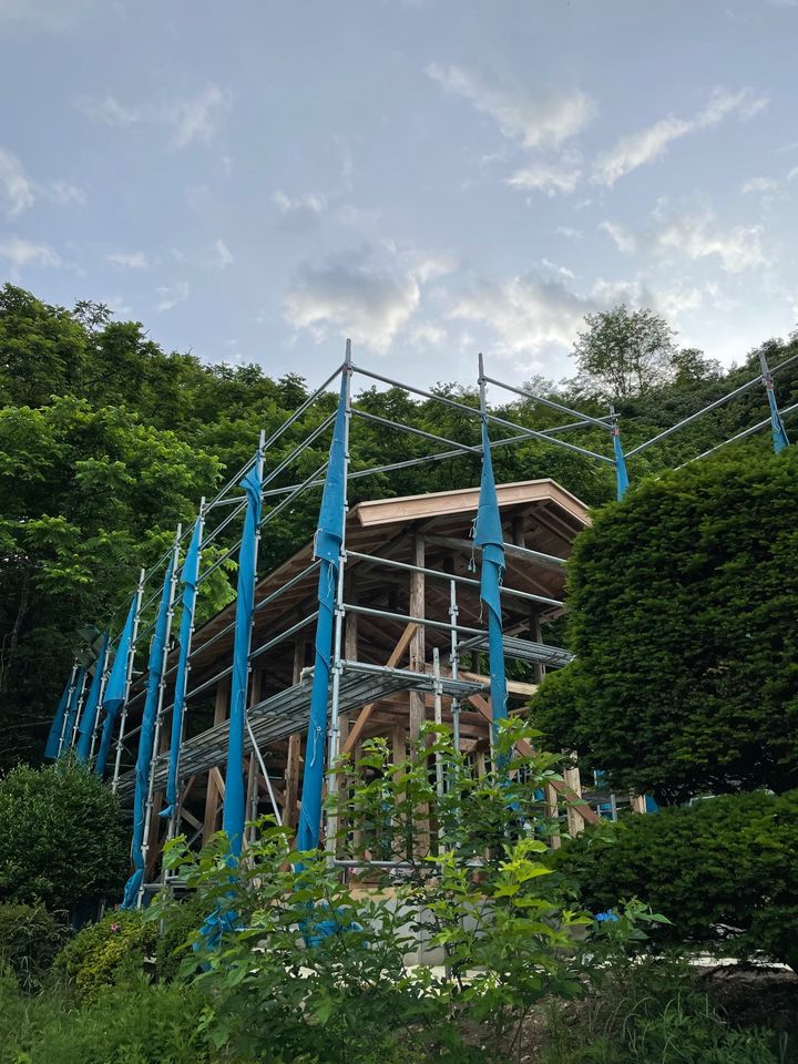2022年6月15日 6月13日「Nobara homestead brewery@長野県/青木村」上棟しました。 長野県/青木村にて進行中のクラフトビール工房「Nobara homestead brewery」。ここに建っていた古い「牛舎」を一旦解体し、改めて構築しました。オーナー自ら土壁に挑戦します。(写真3枚目はホップ。4枚目、「草刈り」をしてくれるヤギの子。)