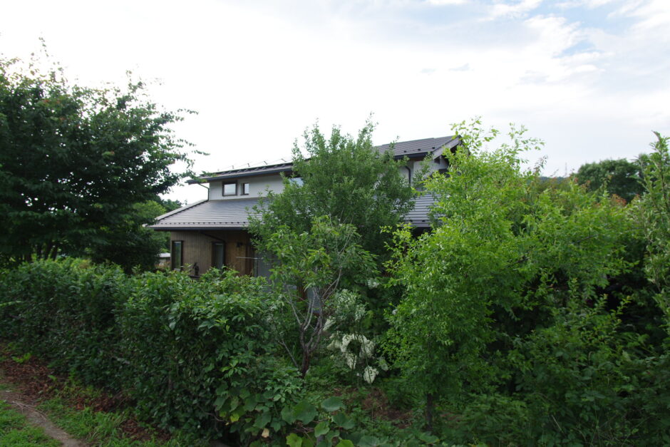 太陽光発電や雨水利用、天窓、菜園など、“エネルギー、食、水”を少しでも自給できる仕掛けを取り入れました。断熱性能は「次世代省エネ基準」以上を確保し、太陽熱のダイレクトゲイン、適正な大きさの開口部等で、エネルギー自給率はかなり高くなっています。