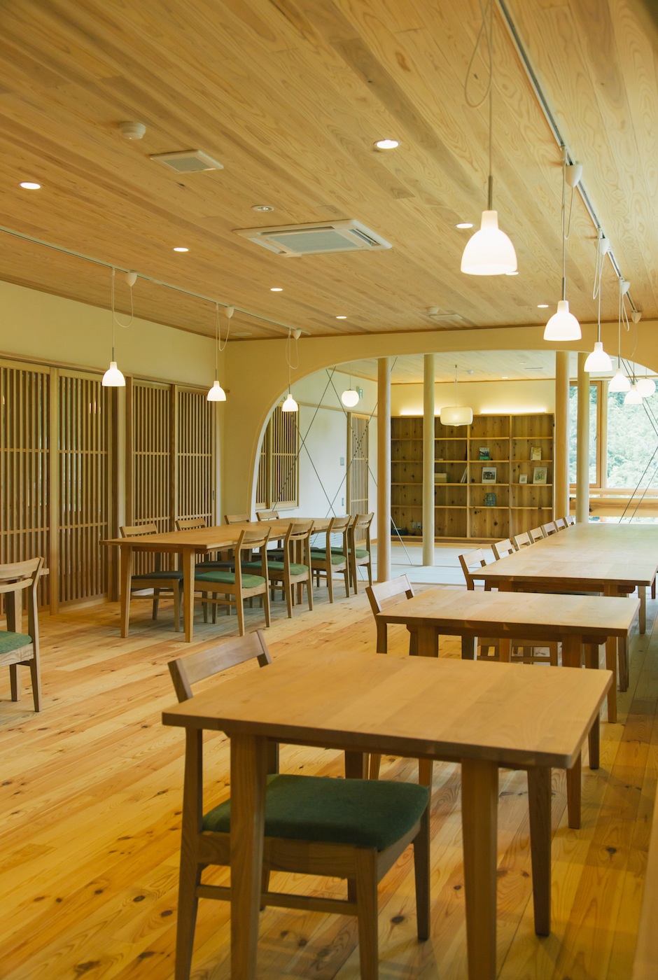 エネルギーの地産地消として、地元の赤松をチップにしたものをボイラーの燃料として、熱を暖房と給湯に供給しています。