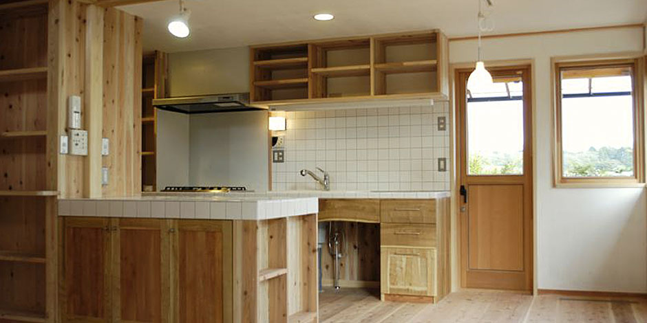 薪ストーブ(オーブン付)、太陽熱集熱装置「そよ風」、雨水利用タンク(ウィスキー樽の再利用)、葡萄棚による日射遮蔽