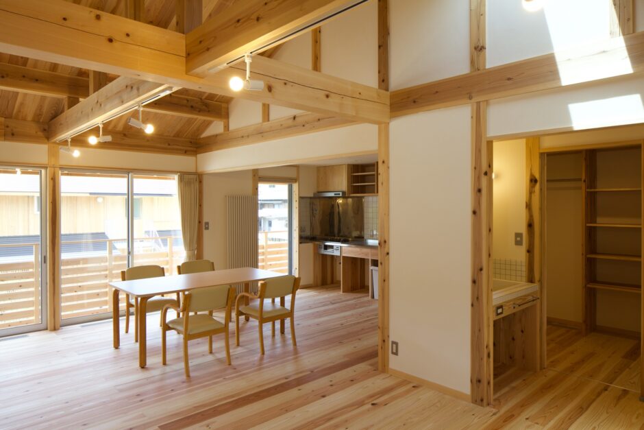 地元の木で地元の大工さんが作り、地域の木材を熱源とした熱エネルギーが施設内を循環し、住まい手や住民が交流する場があり、、、。様々なヒト、モノ、コトが有機的につながる場です。